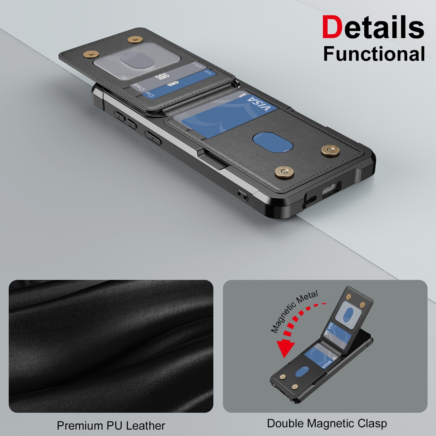 Coveret har en indbygget kortholder med magnetlukning, der har plads til op til fire kort, så du kan lade pungen blive hjemme. Kortholderen fungerer også som et praktisk stativ - perfekt, når du vil se film eller videoer handsfree.
