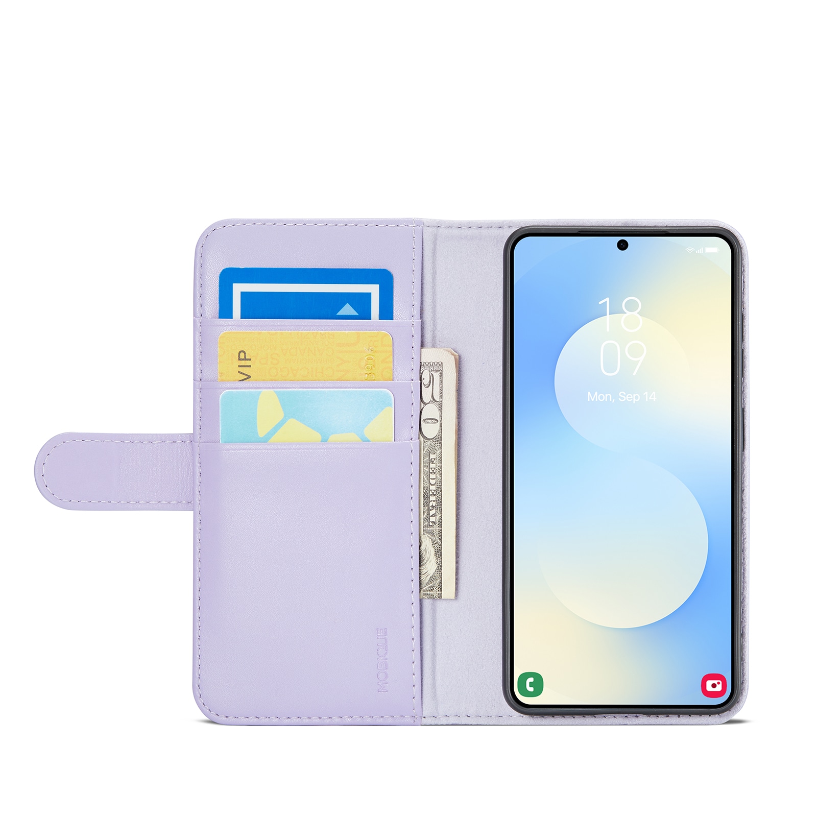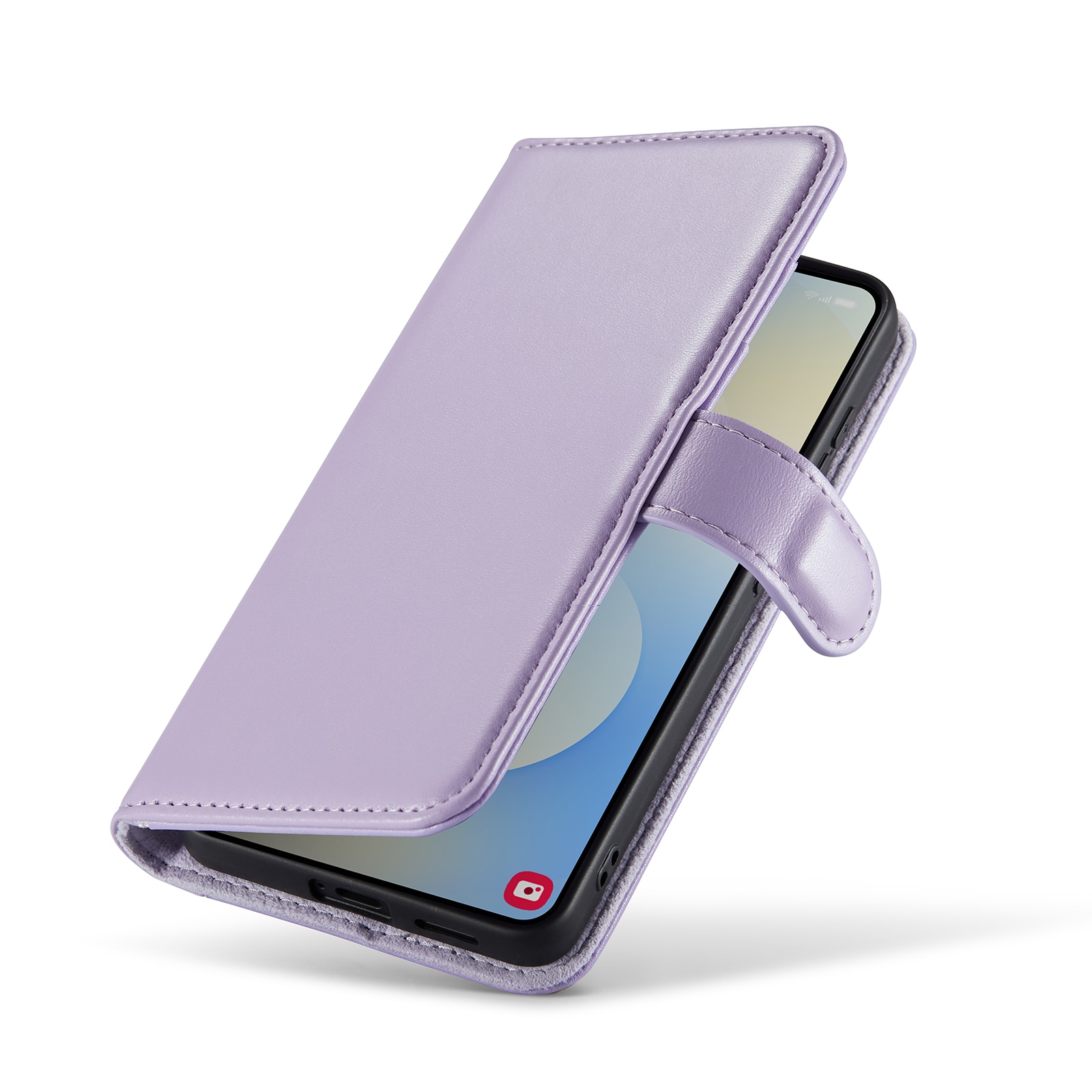 Telefonen sidder sikkert fast i det stødabsorberende TPU-cover, og skjules bag frontcoveret, der holdes lukket med et magnetspænde. På den måde beskyttes både telefonens for- og bagside mod skader.