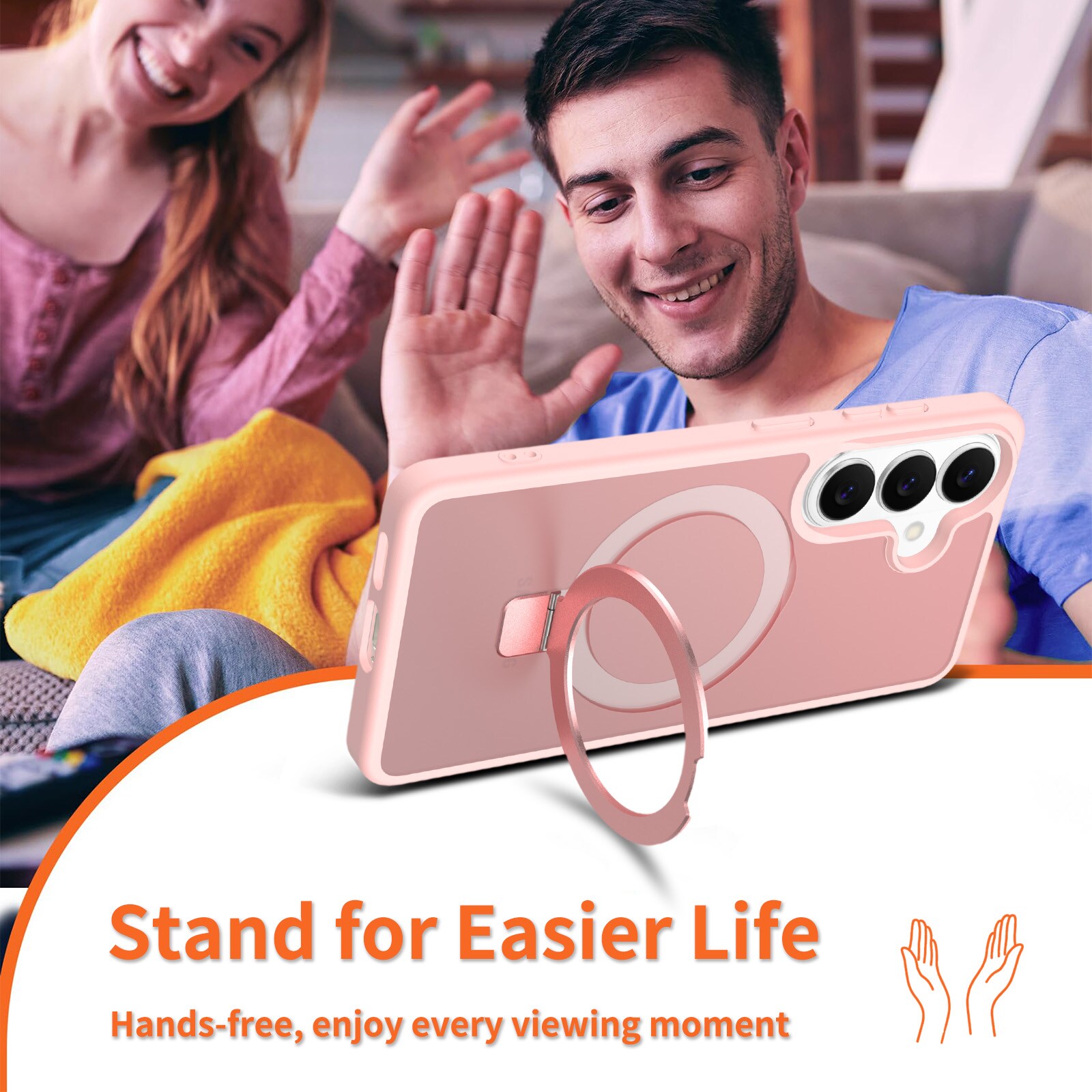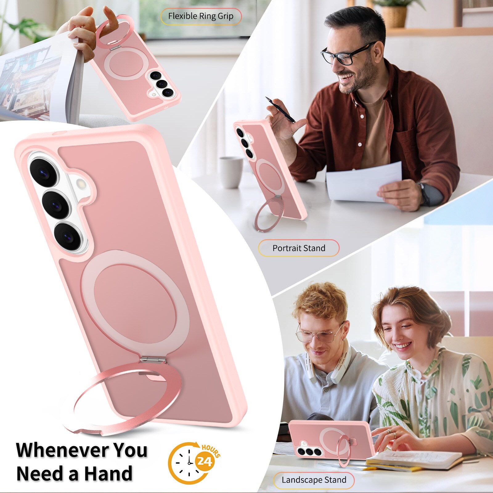 Mobilcover med udtrækkelig magnetisk ring til Samsung Galaxy S26. For optimal beskyttelse mod stød og tab har coveret et todelt design med en TPU-kerne og en ydre skal i hård plast. Ringen på bagsiden er magnetisk og kan bruges sammen med MagSafe-kompatibelt tilbehør såsom opladere og kortholdere. Ringen kan også fungere som et stativ til at se film, videoer eller spille spil.