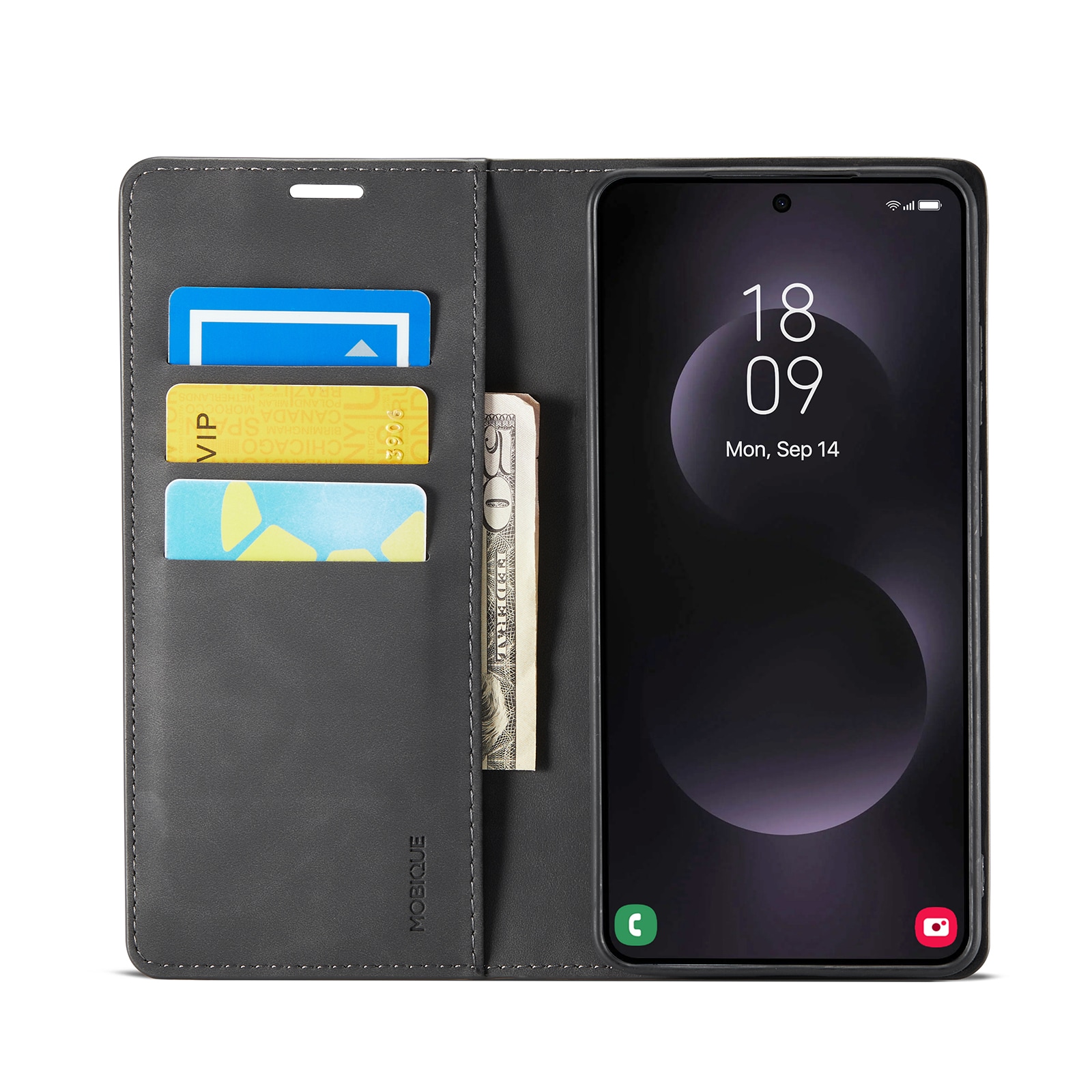 - Plads til kort, kontanter og kvitteringer