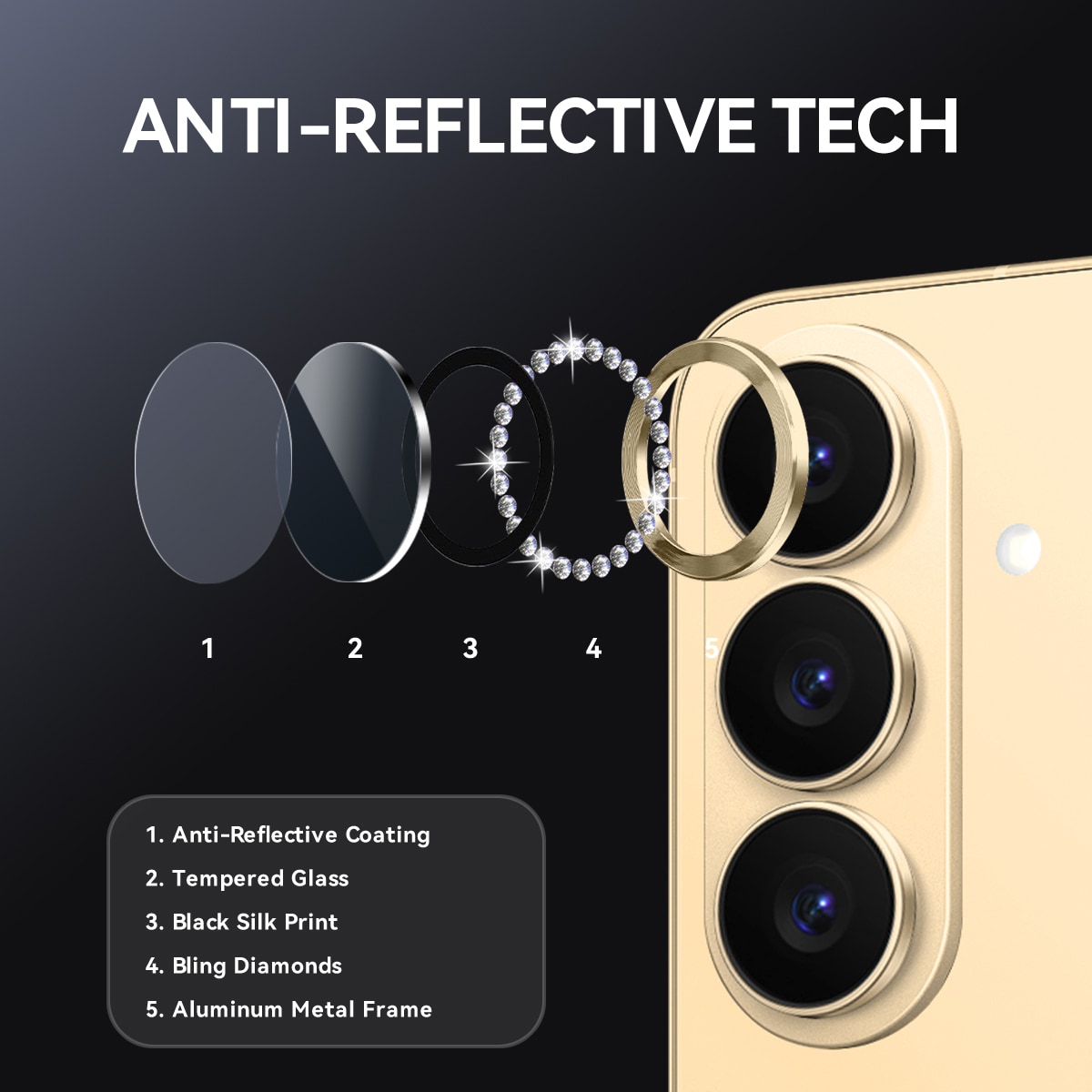 Beskyt kameralinserne på din Samsung Galaxy S26 med en linsebeskytter i hærdet glas med glitrende rhinsten fra Northjo. Den giver pålidelig beskyttelse mod ridser og stød, samtidig med at kameraet får et elegant og eksklusivt udtryk. Det heldækkende design beskytter hele linsen uden at påvirke billedkvaliteten.