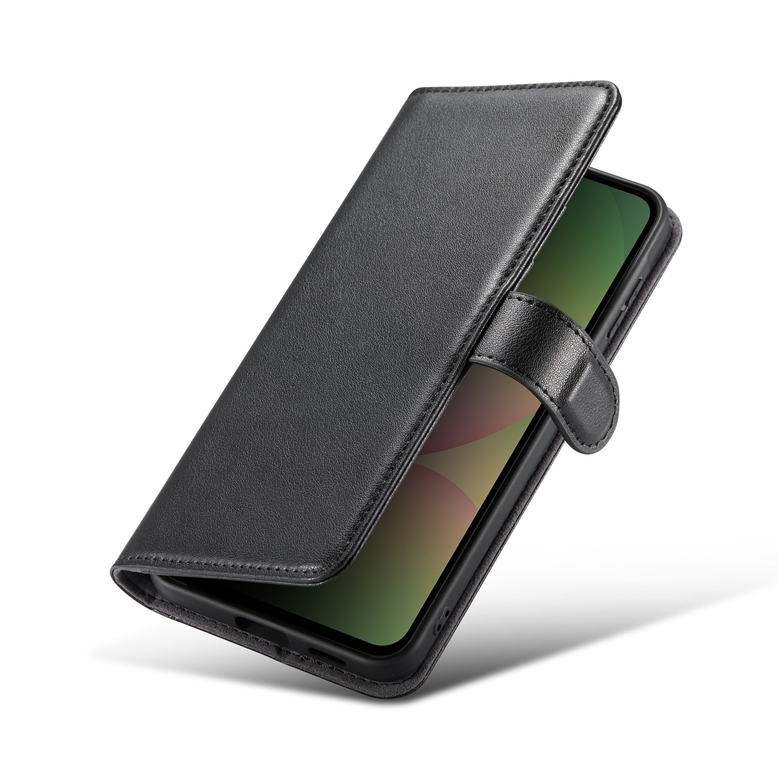 Telefonen sidder sikkert fast i det stødabsorberende TPU-cover, og skjules bag frontcoveret, der holdes lukket med et magnetspænde. På den måde beskyttes både telefonens for- og bagside mod skader.