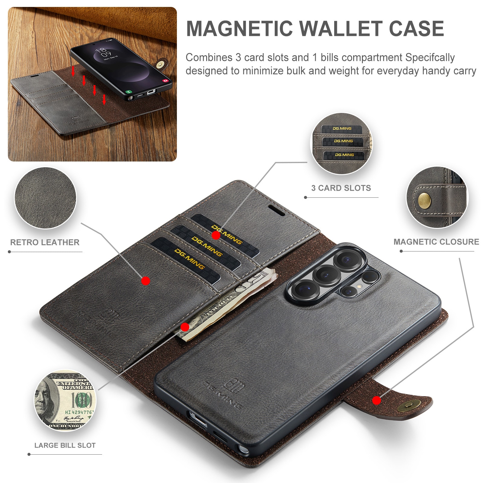 Etui med aftageligt magnetcover fra DG.MING. Etuiet har et klassisk og stilrent design. Det aftagelige cover gør, at du slipper for at bruge hele etuiet, perfekt når du er hjemme eller på arbejde.