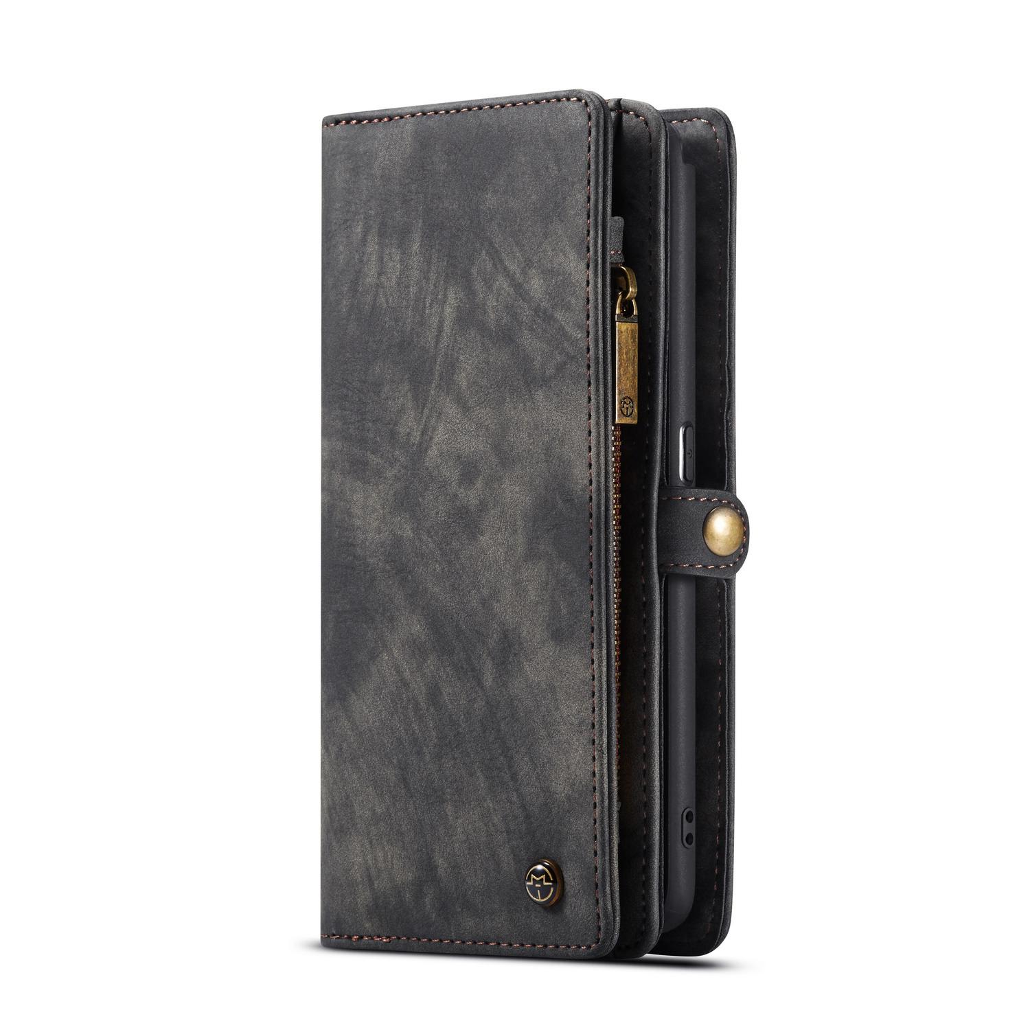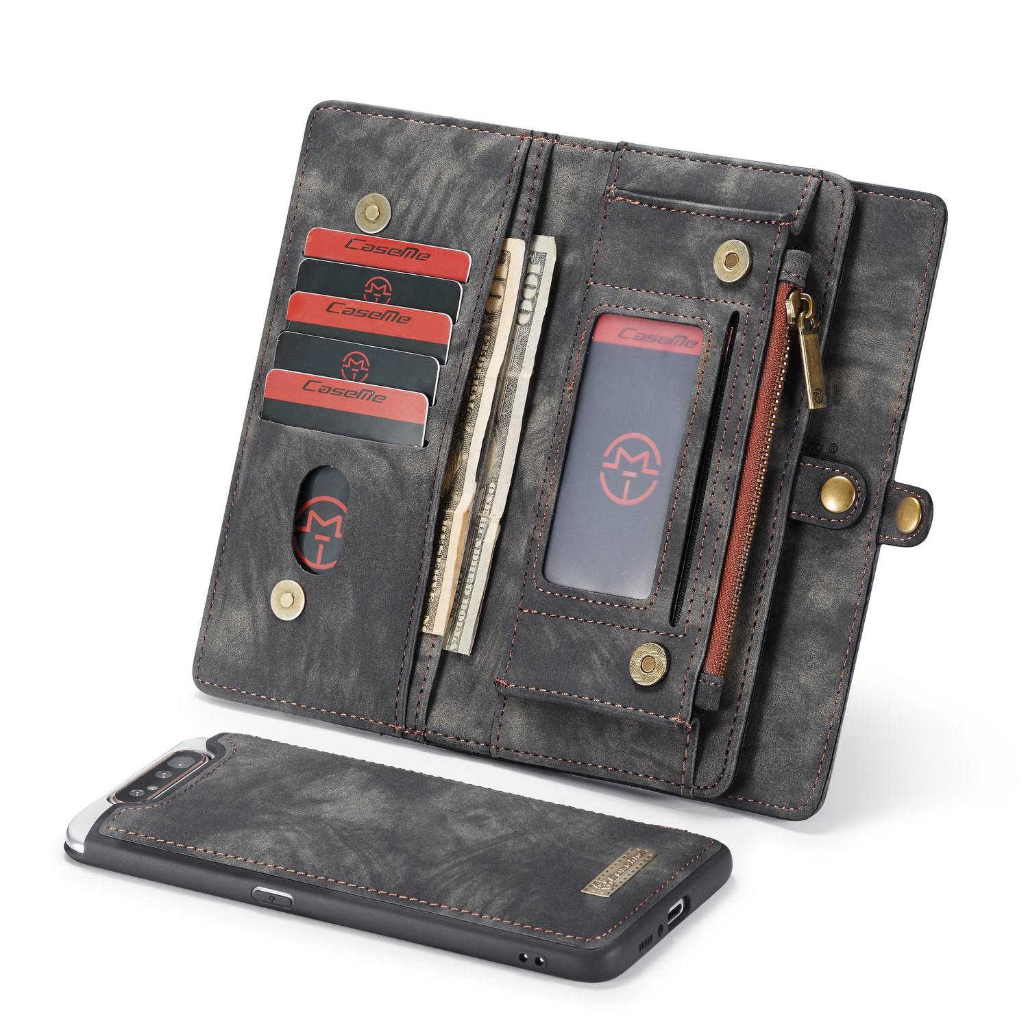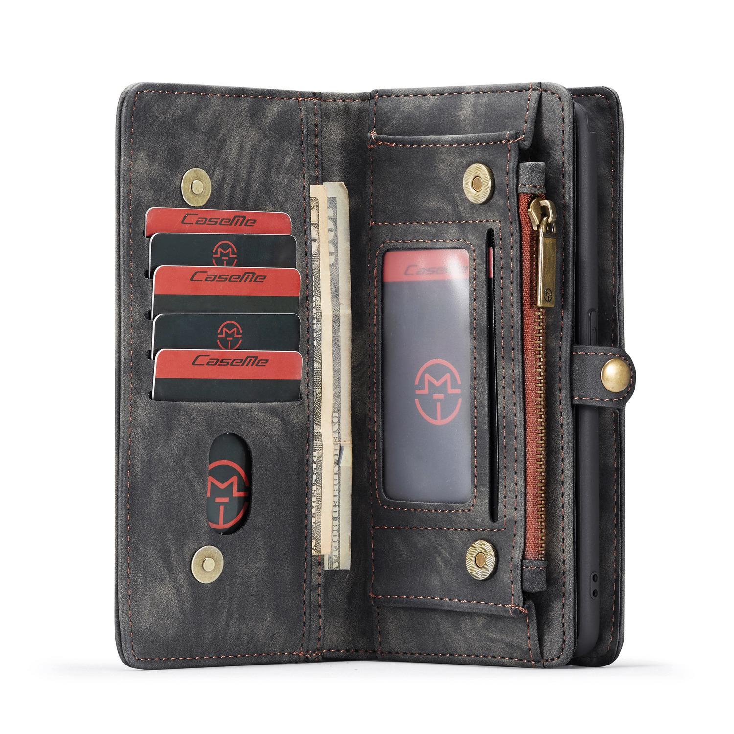 Mobiletui med magnetcover og tegnebog med ekstra mange kortrum fra CaseMe. Denne rummelige tegnebog har en seddellomme, lynlås til mønter og flere kortpladser.