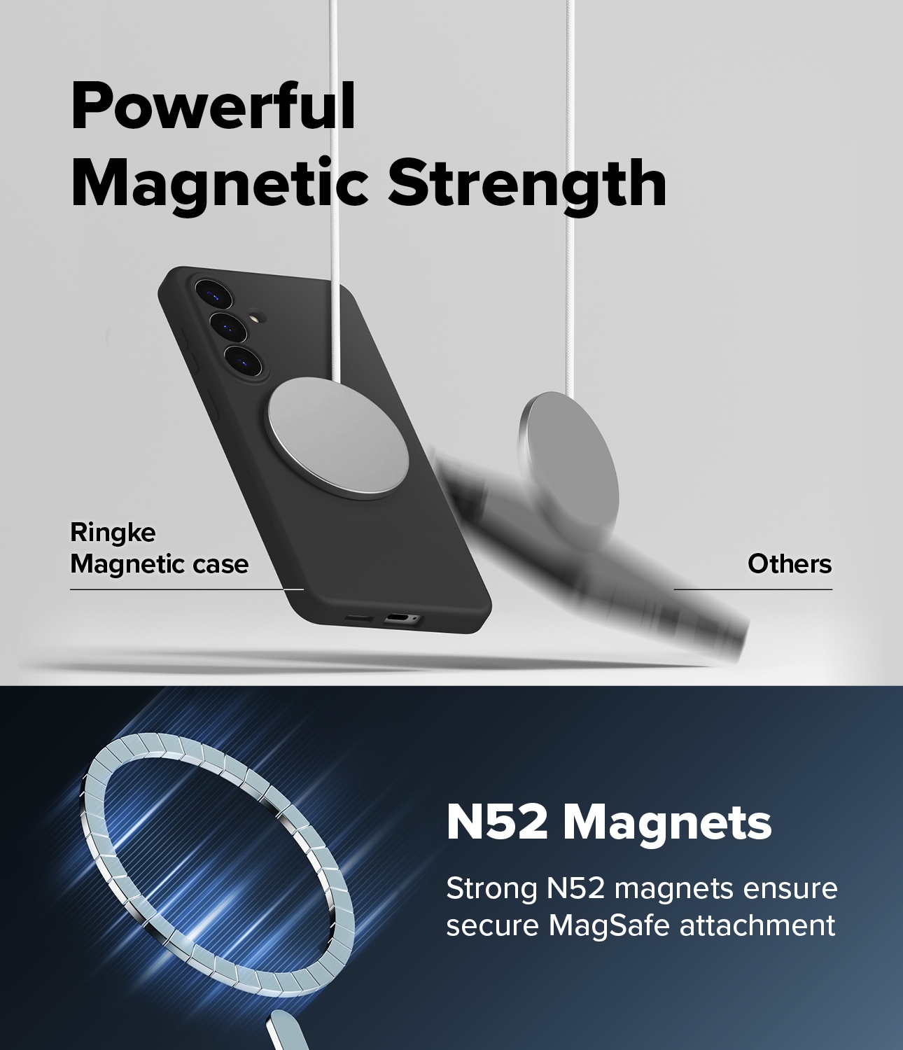 Elegant silikonecover med MagSafe fra Ringke til Samsung Galaxy S26 Plus. Coveret er stødabsorberende og beskytter mod skader, og med MagSafe-understøttelse kan du bruge MagSafe-tilbehør og oplade med MagSafe - uden at fjerne coveret.