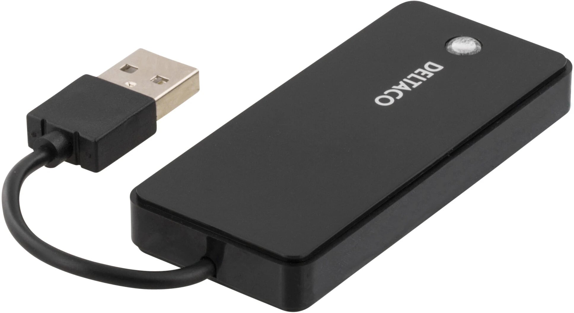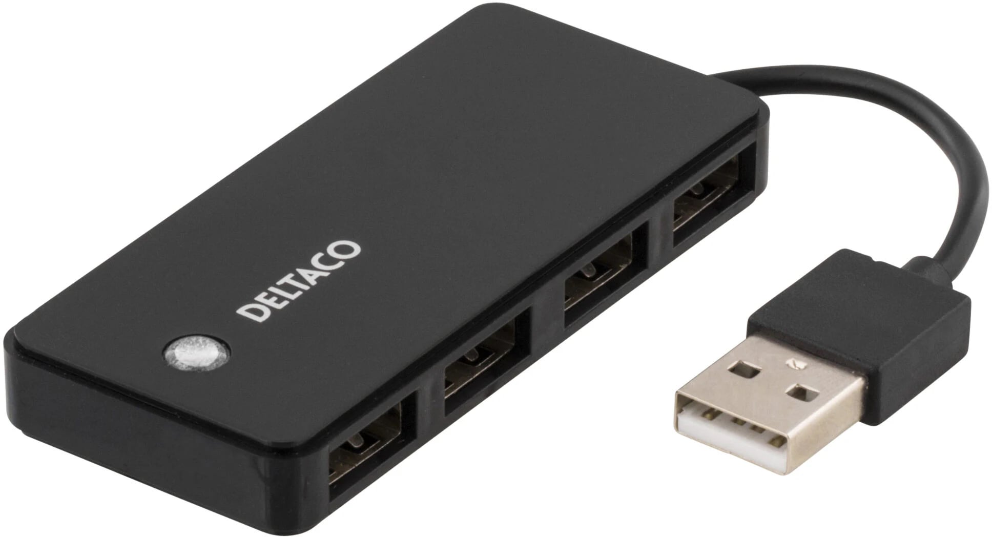 Denne kompakte USB-hub fra Deltaco giver dig fire ekstra USB-A-porte, perfekt til nemt at tilslutte flere enheder samtidigt. Med USB 2.0-tilslutning får du stabil og effektiv dataoverførsel, og hubben har en LED-indikator, der viser, når den er tilsluttet en enhed.