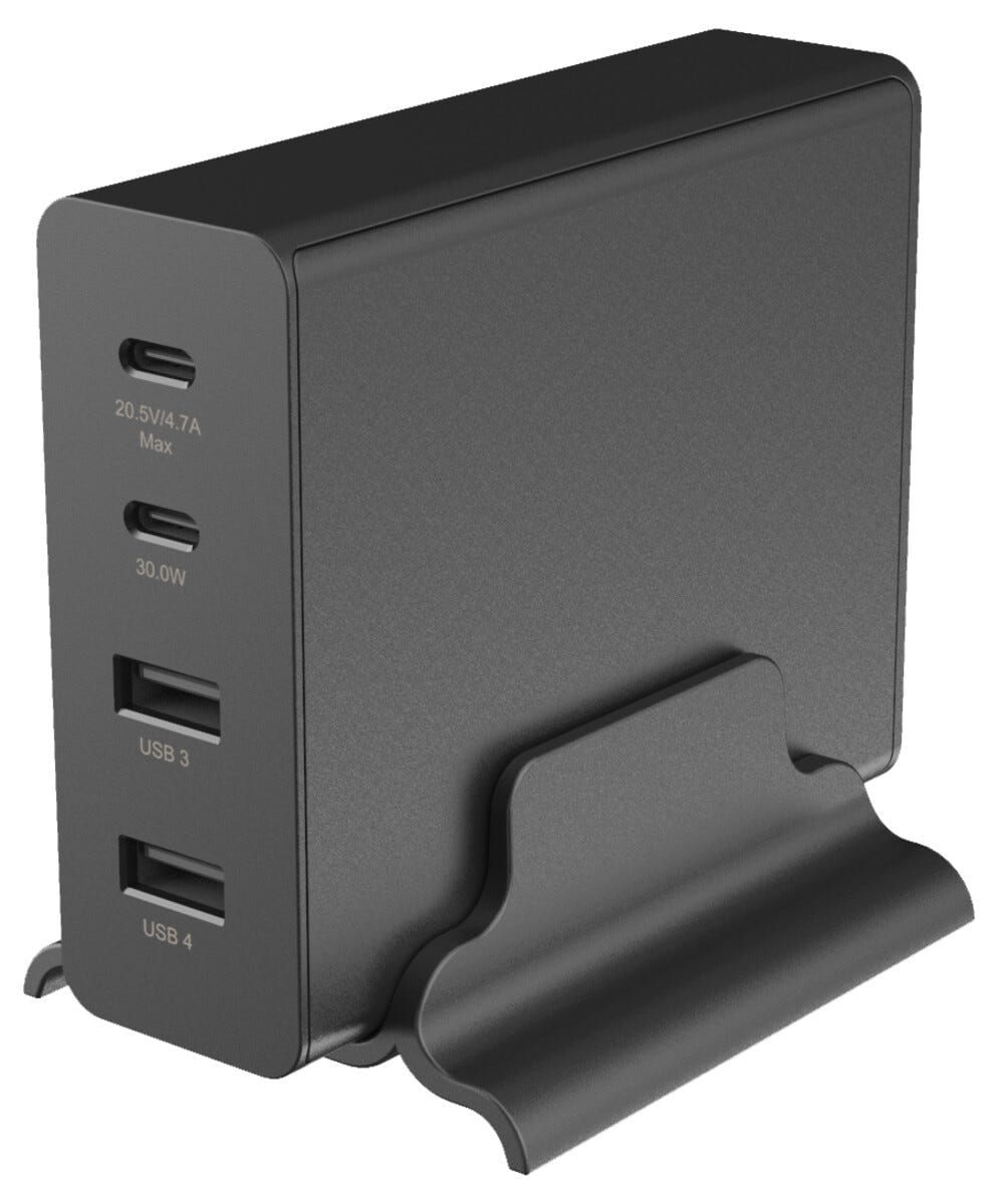 <p>- Ladestation med fire porte til flere enheder samtidig<br />
