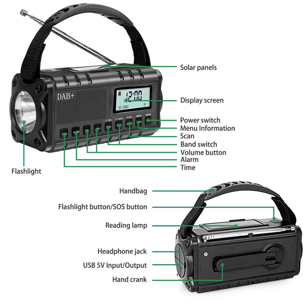<p>Den robuste konstruktion gør radioen slidstærk og nem at tage med. Den indbyggede LED-lommelygte giver kraftigt lys i mørke og ved nødsituationer. Enheden fungerer også som powerbank, så du kan oplade mobiltelefoner og andre USB-enheder uden adgang til strøm. Det tydelige display og praktiske design gør produktet nemt at bruge både hjemme og udendørs.</p>