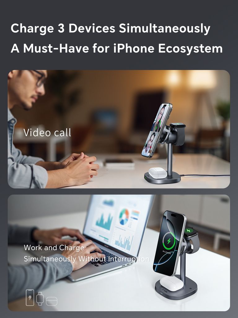 <p>- 3-i-1 magnetisk trådløs opladningsstation<br />
