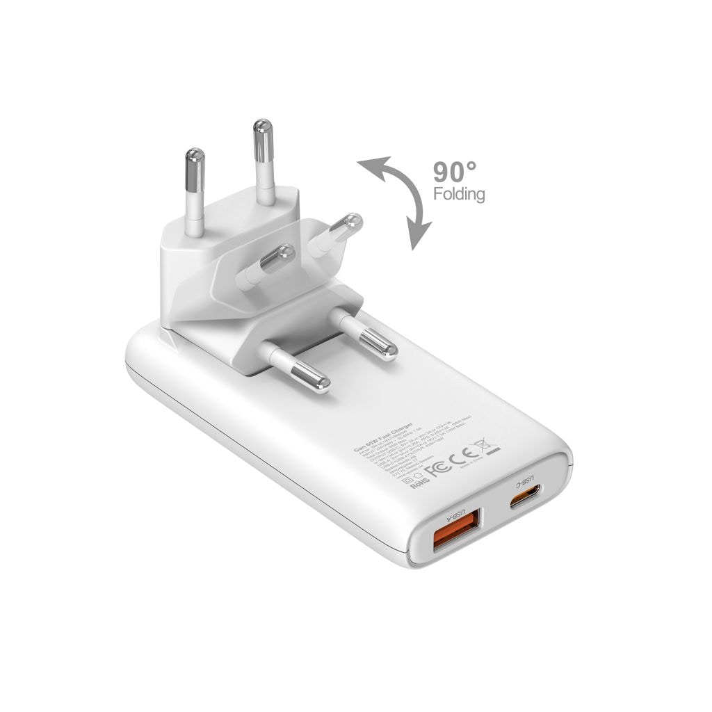 62332GaN ultra slank foldbar væglader USB-C + USB-A 65W Hvidhttps://www.phonelife.dk/opladere-kabler/vaegladere/vaegladere-usb-c/gan-ultra-slank-foldbar-vglader-usb-c-usb-a-65w-hvid?channelCountry=DKhttps://www.phonelife.dk/pub_images/original/3_-_-_5_-_-_458fbbb60a2da2c940aa1e9162fee458_R6ym3-h5TV9mgmjyMm2XY.jpgInStock189DKK/opladere-kabler/vaegladere/vaegladere-usb-cSiGN<p>SiGN GaN Ultra Slim 65W væglader er en kraftfuld og kompakt opladningsløsning, der kombinerer høj ydeevne med et smidigt og portabelt design. Med GaN-teknologi får du en mere effektiv, køligere og mindre lader sammenlignet med traditionelle alternativer. USB-C-porten leverer op til 65W med understøttelse af PD og PPS, hvilket gør den ideel til opladning af laptop, tablet og smartphone. Den ekstra USB-A-port på 18W gør det muligt at oplade en ekstra enhed samtidig. Den foldbare og ultraslanke konstruktion gør laderen nem at have med i lommen eller tasken, perfekt til både rejser og daglig brug.</p>