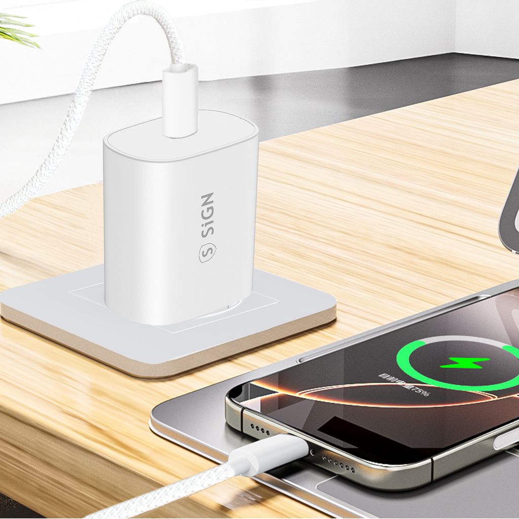 SiGN USB-C hurtigoplader 25W er en kraftfuld og kompakt vægoplader designet til hurtig og stabil opladning af moderne USB-C-enheder. Med USB Power Delivery understøtter opladeren op til 25W effekt, hvilket gør den velegnet til smartphones, tablets og andre kompatible enheder. Den optimerede opladning sikrer stabil ydeevne i daglig brug.