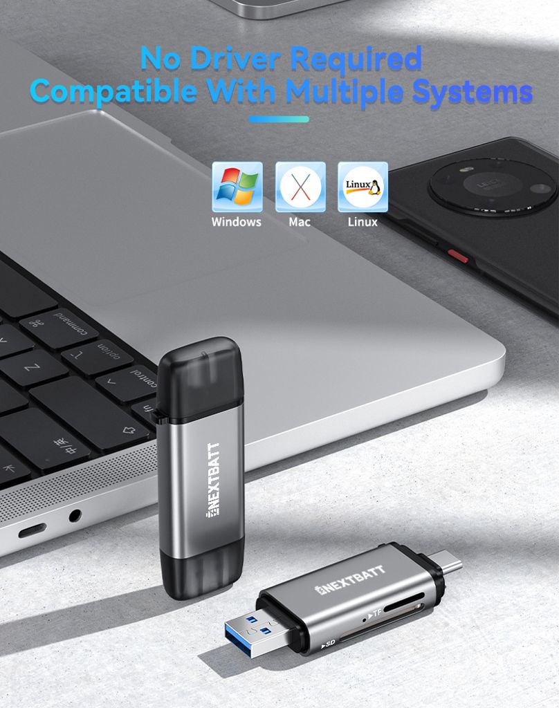 - Understøttede kort: SDXC, SDHC, SD, MMC, RS-MMC, Micro SD, TF, Micro SDXC, Micro SDHC, UHS-I<br />