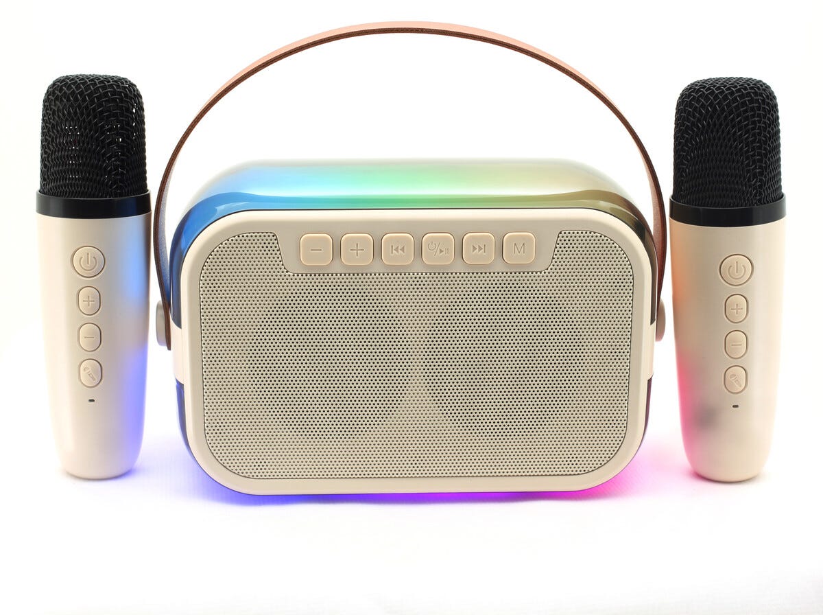 Karaoke højttaler med 2 trådløse mikrofoner Beige