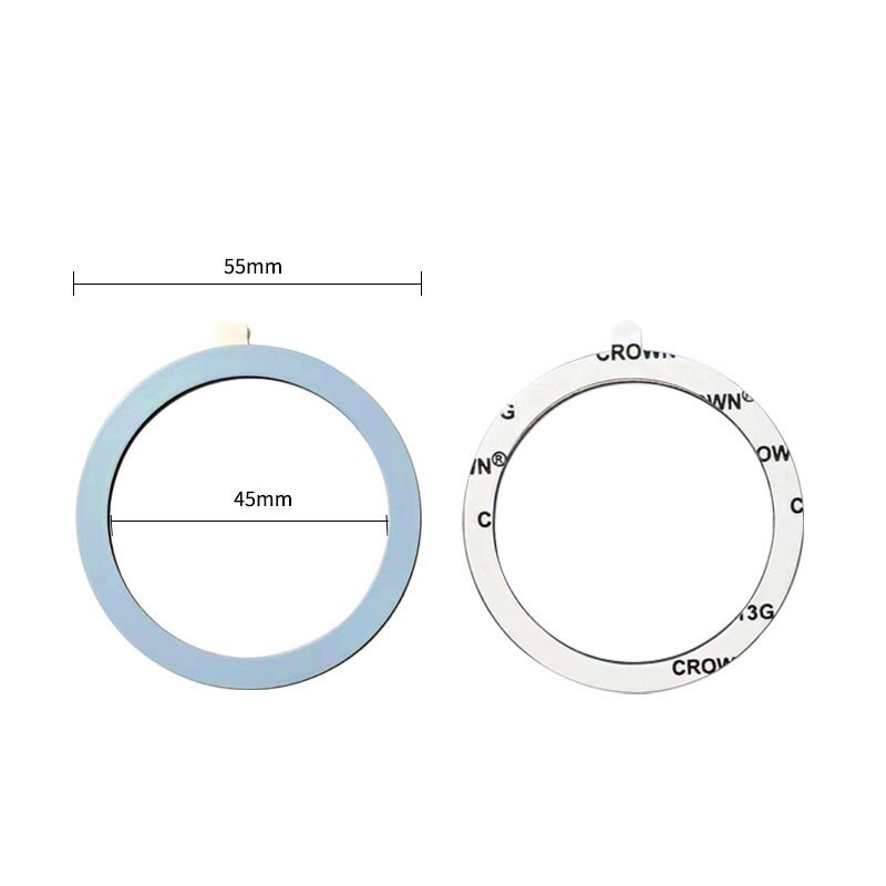 Magnetisk klistermærkering til MagSafe-kompatibilitet. Den er designet til at være kompatibel med MagSafe-opladning og MagSafe-tilbehør. Ringen har en selvklæbende bagside, der gør det nemt at fastgøre den på din enhed eller på et almindeligt mobilcover. Den tynde og lette design smelter sømløst sammen med telefonens udseende uden at gøre den klodset eller besværlig.