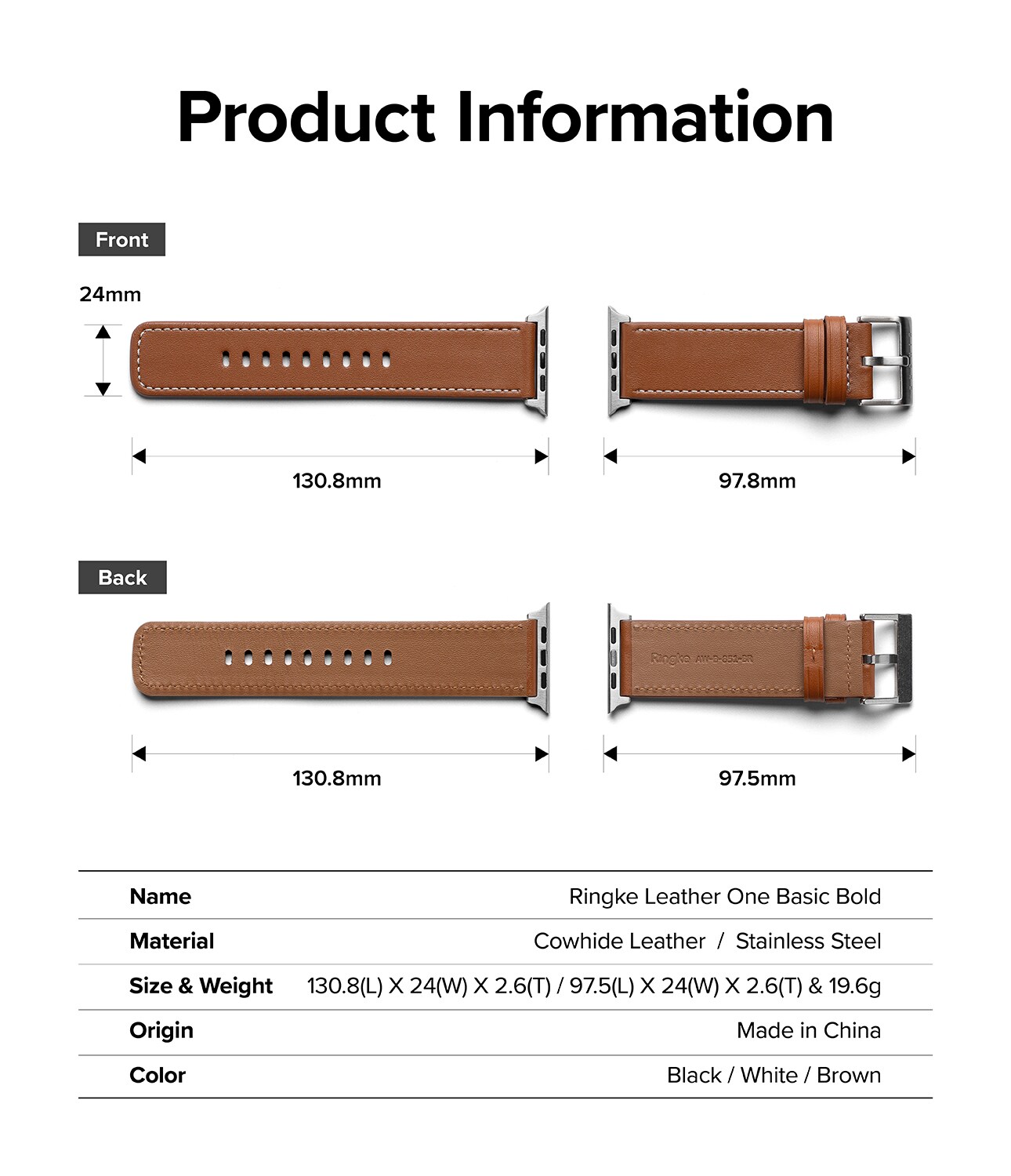 Ringke - Leather One Basic Bold Band Apple Watch Series 1-3 42mm Brown