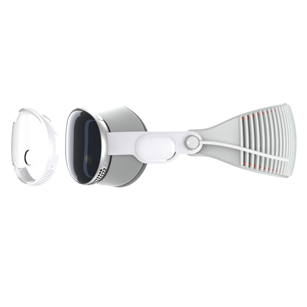 Støddæmpende beskyttelsescase til Apple Vision Pro, der tilbyder effektiv beskyttelse mod både ridser og stød. Fremstillet i TPU med forstærkning i PC, kombinerer dette cover holdbarhed med et tyndt og gennemsigtigt design, der bevarer enhedens oprindelige udseende og funktionalitet. Coveret har udskæringer, der gør det nemt at tilgå og bruge alle knapper og funktioner.