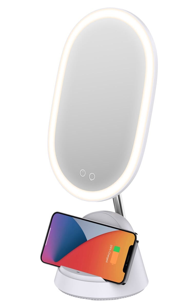 62220Makeupspejl med belysning og trådløs Qi-oplader Hvidhttps://www.phonelife.dk/traning-hjem-fritid/makeupspejl-med-belysning-og-tradls-qi-oplader-hvid?channelCountry=DKhttps://www.phonelife.dk/pub_images/original/68736250150942.jpgInStock419DKK/traning-hjem-fritidClas Ohlson<p>Makeupspejl med LED-belysning og indbygget trådløs Qi-opladning kombinerer praktisk funktion med stilrent design. Justerbar belysning i tre niveauer og valgfri farvetemperatur gør det nemt at skabe det rette lys til både hverdag og fest. Spejlet kan vinkles op til 40 grader for optimal anvendelse og leveres med et magnetisk 3x forstørrelsesspejl som gør det lettere at påføre makeup præcist. Den integrerede ladeflade giver smidig trådløs opladning af kompatible iPhone- og Android-enheder, hvilket gør spejlet til et funktionelt tilbehør på makeupbordet eller i badeværelset.</p>