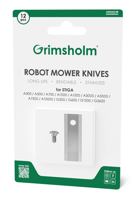 12-pak holdbare og effektive knive til Stiga A 100v, som giver din robotplæneklipper den skarphed, den behøver for at holde din græsplæne perfekt trimmet. Disse knive er fremstillet af hårdt stål designet til at sikre lang levetid og optimal klippekvalitet. Bladene gennemgår en kontrolleret hærdningsproces, som sikrer, at knivene bevarer deres fleksibilitet, hvilket minimerer risikoen for, at de knækker, hvis plæneklipperen rammer en sten eller et andet hårdt objekt.