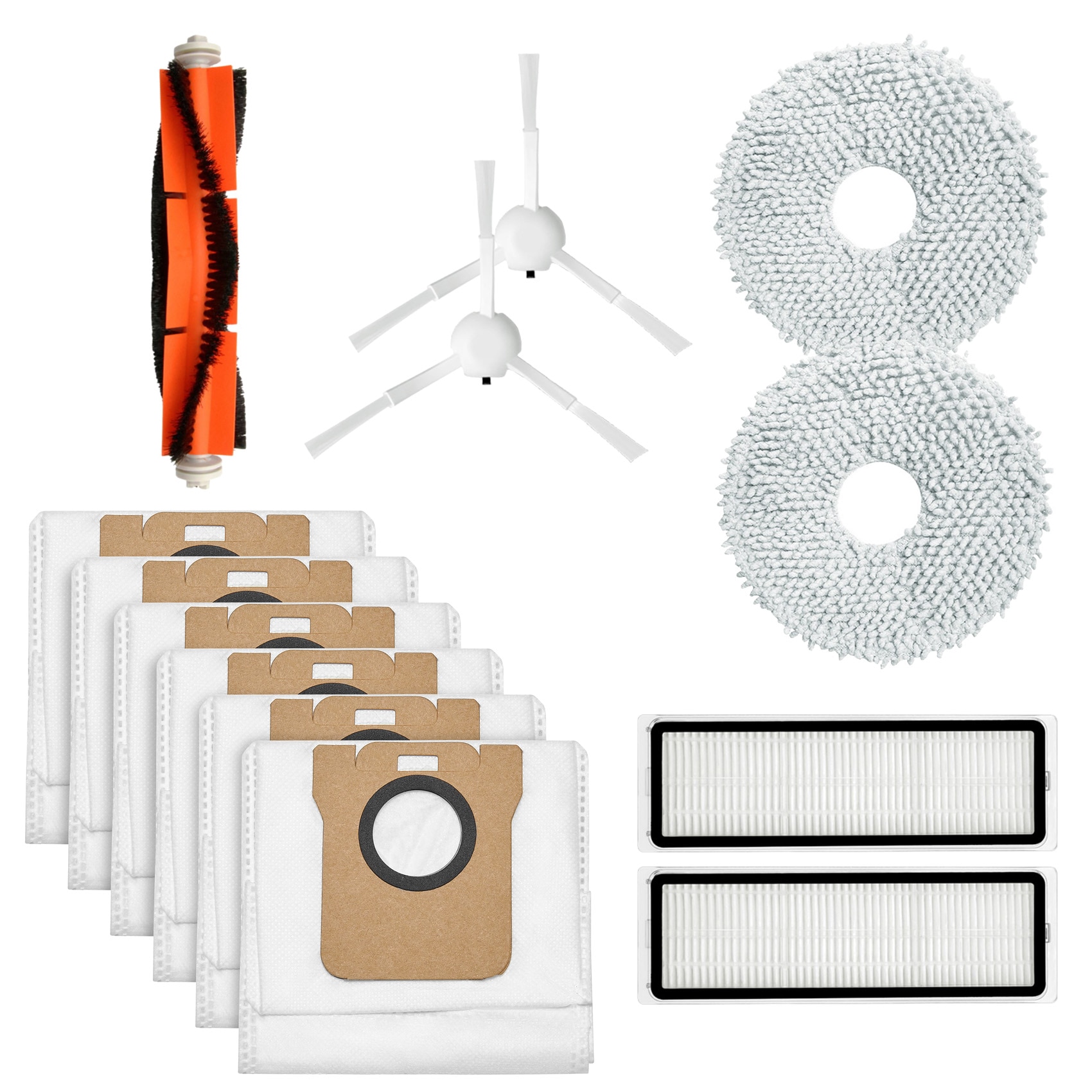 Indeholder 6x støvsugerposer, 2x filtre, 2x moppemopper, 2x sidebørster, 1x hovedbørste
